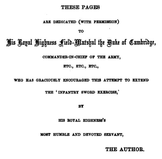 “I have now finished with the ungrateful task of criticizing, and I proceed to propose a system which it is hoped will be as severely criticized by others. It is only candid to state that its pretensions are high, that it contains two distinct novelties, the Manchette System and the Reverse or Backcut; and, finally, that it aspires to be the first Treatise in which the broadsword is scientifically taken in hand.”