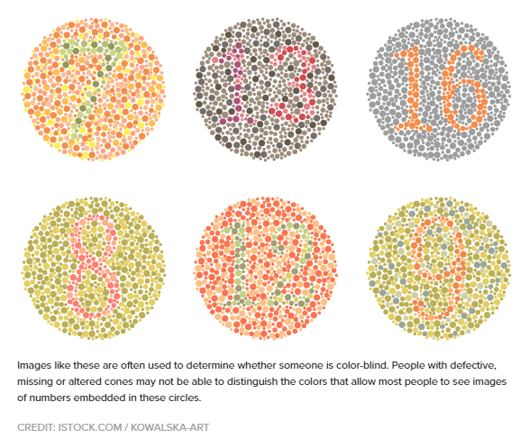 Color blindness puzzles me. Why does red-green color blindness primarily impact men? Seems odd given that following a blood trail in the green woods is more difficult. I suffer from partial color blindness and can only see the “16” clearly and it takes effort for me to recognize the “7” while the other numbers are lost in the meaningless sea of dots.