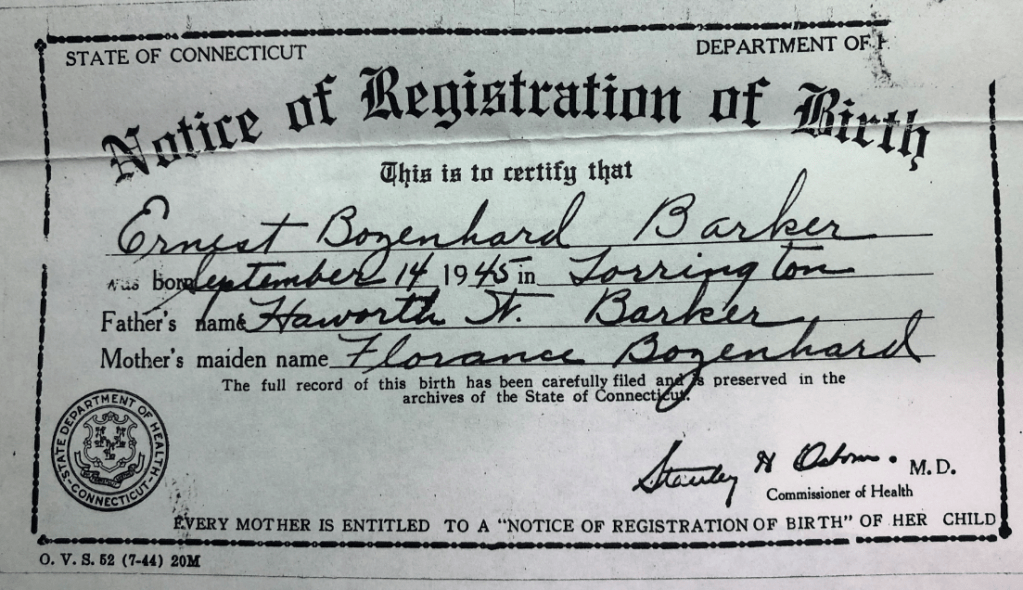 Ernest Bozenhard Barker was born September 14, 1945 in Torrington, Connecticut.