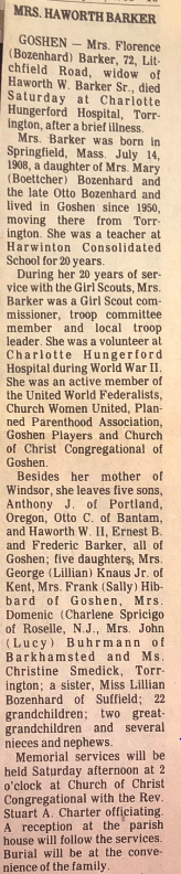 He was born to the late Florance Elizabeth Bozenhard and Haworth Wadhams Barker, Sept. 14, 1945, in Torrington, one of 11 children. He graduated from Southern Connecticut and Central Connecticut with a master’s in art education.