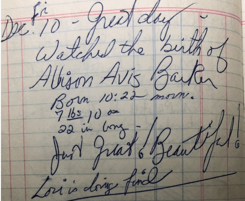I have a dim memory of my mother’s youngest brother Uncle Adin (Robert) Gilman coming to stay with me while my parents went to the hospital for the birth of my sister. Allison Avis Barker was born December 10, 1970