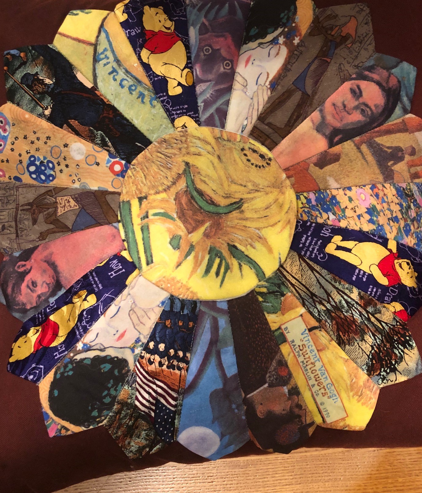 He wore purple and orange. When he taught and wore ties, his were always whimsical. As an remembrance I was given a pillow from his ties.