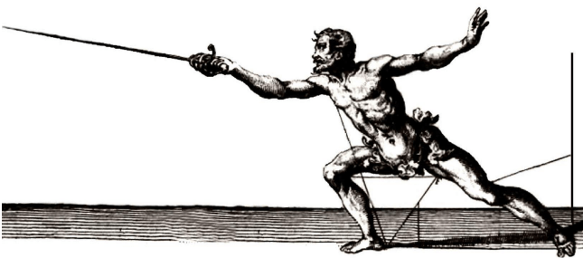 The lunge was a mathematically calculated movement which involves coordinated body mechanics to work correctly. The lunge is by far the fastest way to attack from misura larga (wide measure), and done properly, is a lightning fast movement of the human body.