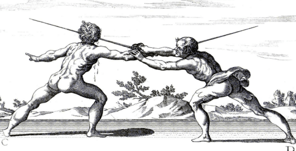 misura stretta (short measure), in which one could hit the opponent by reaching out by only pushing out the body from the legs;
