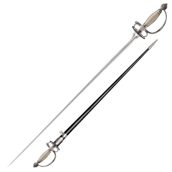 Made with historical accuracy and functionality, it has a stiff, lightweight blade forged with a triangular cross section, and a functional hilt, consisting of an elliptical plate, or two shells and a knuckle guard. Cold Steel’s modern version uses 1060 carbon steel, heat treated to a tough spring temper. The hilt features two shells with functional finger loops and a light, but exceptionally strong, knuckle guard. It comes with an attractive leather scabbard with an intricately decorated throat and chape.