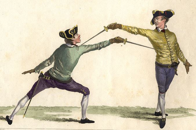 Domenico Angelo Malevolti Tremamondo (1717-1802), began his study of the sword in Italy under Andrea Gianfaldoni, and then in France under Teillagory, where he completed his apprenticeship. He then moved to England and established a school in London around 1759. Domenico was accomplished in both fencing and riding and had achieved several notable fencing victories before he was employed to teach various high-status clients, including the Prince of Wales (future King George III) and the Duke of York.