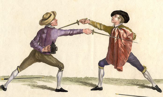 A native of and originally schooled in Italy, Domenico asserts, “the superior talents of the French fencing masters; and, according to the knowledge which I have acquired, I believe them to be the best in the world…” In addition, he notes, that the minimum training to become a master was a six-year apprenticeship under one master followed with, a “public reception of a fencing master; when an usher has finished his apprenticeship under and able master, and is presented to the public to be received as a master, he is obliged to fence with several masters.” You have to prove to the public your abilities to be recognized.