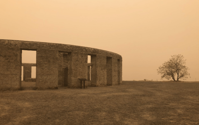 Stonehenge is just over 100 miles east from Portland – a drive through the scenic Columbia River Gorge along highway 84 on the Oregon side and a river crossing over to Washington at Biggs. Set on the top of a cliff, the views from Maryhill are normally spectacular.