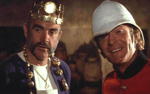 He put on costars as comfortably as he put on clothes. For all that he could overpower less charismatic presences, Connery was a generous screen partner for many actors, especially actors with the right sense of humor. Alec Baldwin, as the buttoned-up CIA analyst in Red October, was smart enough to stay out of his way, but Harrison Ford’s smirking Indiana Jones brought out a wonderful side of him; he found a way to transpose his aura of sheer blessedness into an otherworldly and almost saintlike innocence that brilliantly needled Ford’s earthbound hard work. The Kipling-derived colonialist fantasy The Man Who Would Be King, from 1975, must be one of the most problematic movies ever committed to film, but it’s worth gritting your teeth through the story just to see Connery and Michael Caine, real-life pals, being happily tall together.