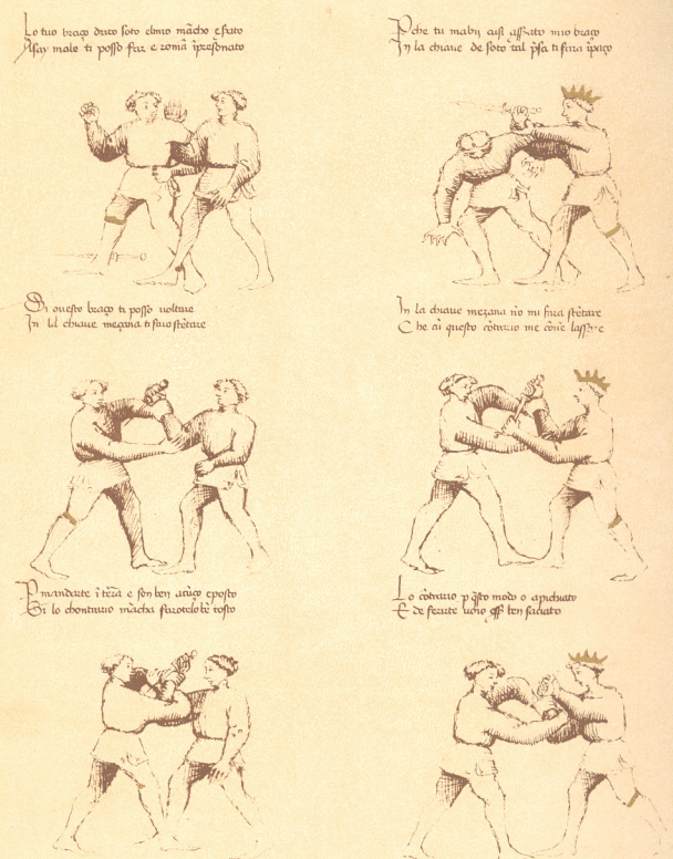 Disarms are a necessary part of any combative art and techniques are shown in early fightbooks. The Italian Fiore de’ Liberi wrote his Flower of Battle manual circa 1409:
