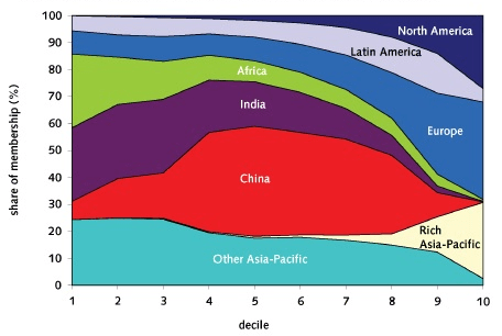 Why is inequality in America not a rally-cry? Simple most Americans are comfortably well off and people vote their aspirations. The disparity within America may be pronounced, but I have a suspicion people may have an osmotic understanding that they are far better off just having been born American. We won the global lottery already. As the distribution graph shows, if you are in America, likely you ain’t poor regardless of your relative position within America itself. Any given American may have a diminishing percentage of the “pie of wealth” but that pie has grown so fast as to still improve the average household’s quality of life. Moreover the quality of the goods consumed is no longer dictated by their price: consumption isn’t as unequal as income distribution indicates. (Perhaps my frame of reference is too historical, but I would much rather be born poor in American that be Caesar – we control more raw power over our environment and have access to more creature comforts, see Dracula as Historian.)