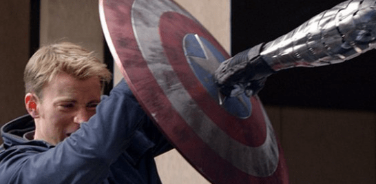 Absorbing a force directly is punishing because the force isn’t dissipated – the physics remains an inelastic collision. Captain America has a Vibranium shield as well as super-human strength and durability – the rest of us have to use technique and demonstrate a better understanding of physics when fending off violent attacks.