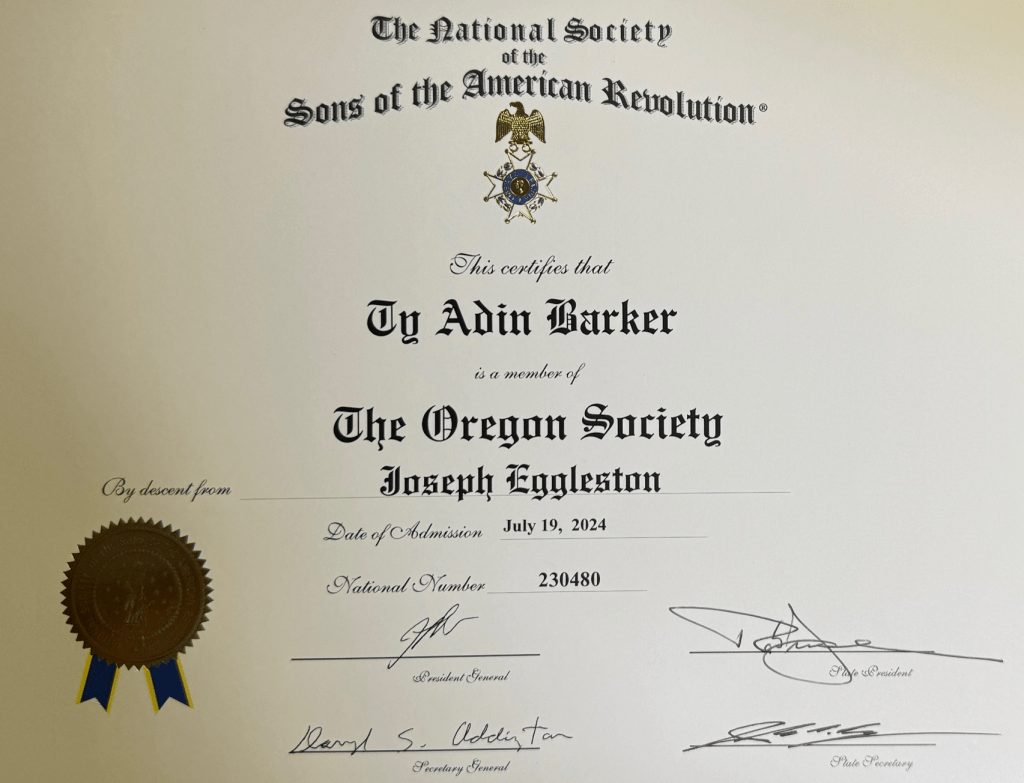 Despite the thin service record, the lineage was established and used by my paternal uncle Fred for his application. Mine followed the same genealogical connections and I used it to establish membership for my sons as well.